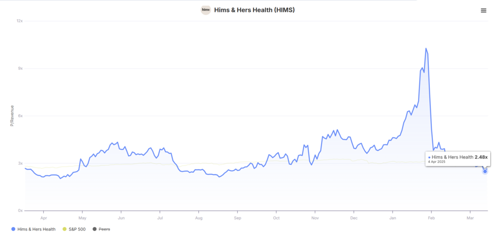 Gast250606 April 8, 2025 HIMS hat die letzten Wochen wieder deutlich abgegeben, wie der Gesamtmarkt. Derzeit ist die Bewertung wieder sehr attraktiv - anhand P/Sales 2,5 Diesen Beitrag teilen Link zum Beitrag