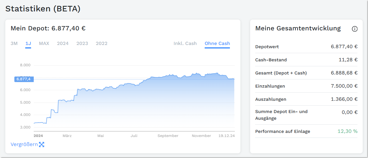 Jennerwein Dezember 31, 2024 · bearbeitet Dezember 31, 2024 von Jennerwein 21,5% auf das Gesamtdepot inkl. liquider Reserve, Girokonto und Depotkonto Fazit: Sehr zufrieden. Diesen Beitrag teilen Link zum Beitrag