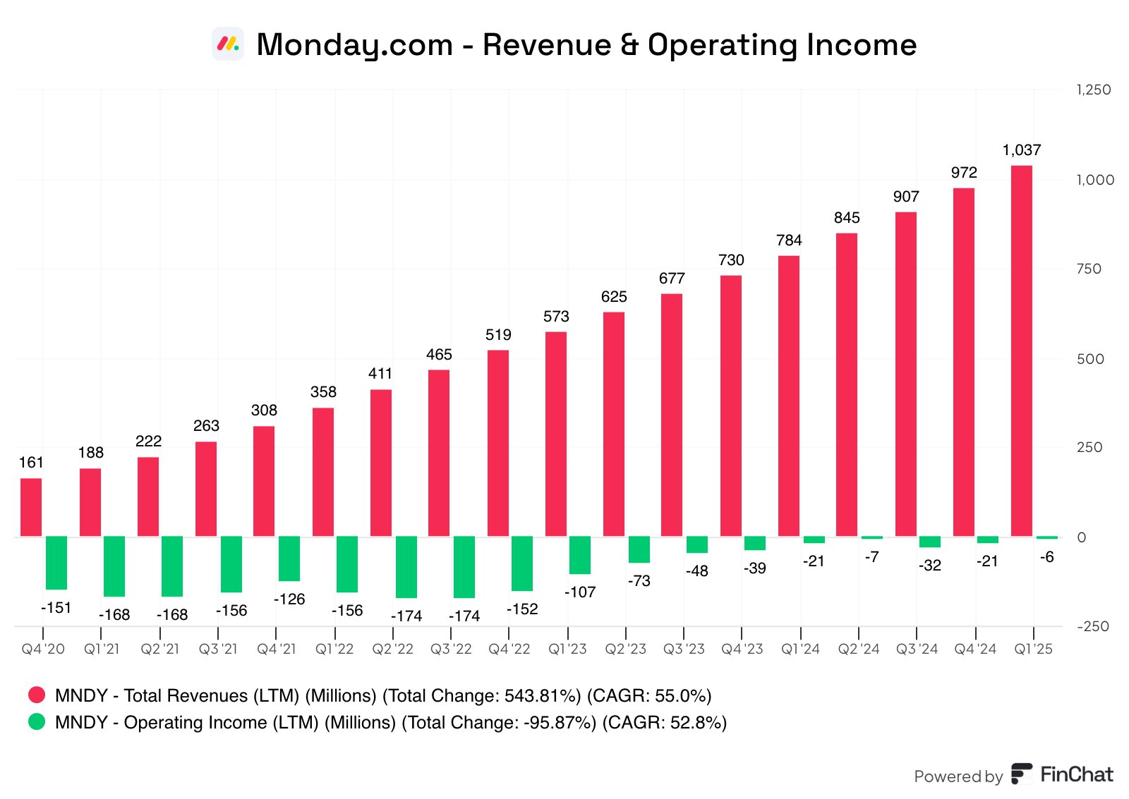 Owl 17. Mai Monday dot com continues to grow revenue at more than 30% while getting closer to profitability. Is this one of the best run SaaS companies around today? $MNDY https://x.com/finchat_io/status/1923458441894560117 The number of businesses spending more than $50,000 a year on Monday dot com has increased 45x over the last ~5 years. They continue to add new customers and get more out of their existing ones. $MNDY https://x.com/finchat_io/status/1923019302300680437/photo/1 Diesen Beitrag teilen Link zum Beitrag