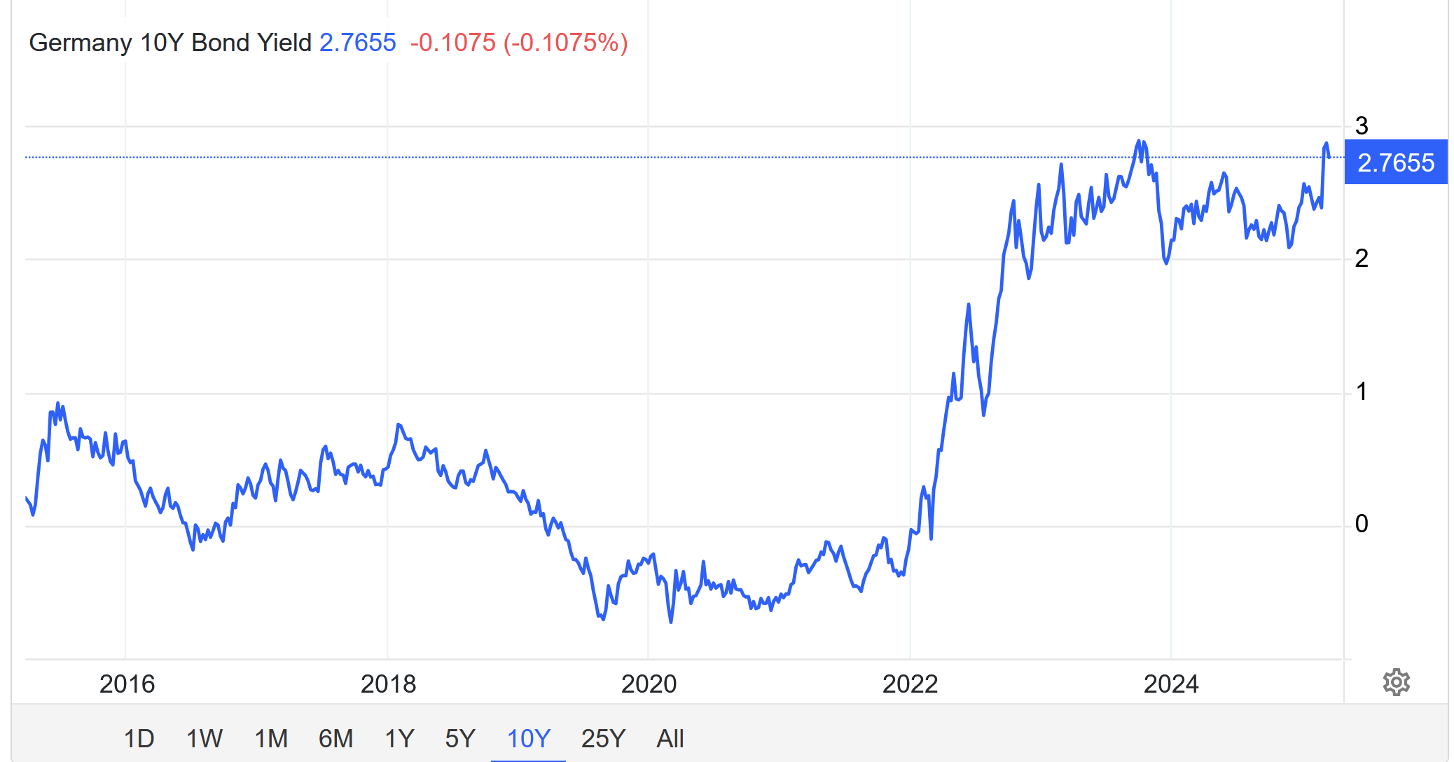 oktavian 19. März vor 4 Stunden von Puppi: Lass sie doch, sofern sie damit vielleicht wieder einen Fehler begehen und nur blind der höchsten Zinszahl hinterher-hächeln. Diese Anleger haben nichts verstanden. da bin ich dabei und habe outperformt inkl Abstieg vom Euro vs USD mitgennommen. Ich war auch schon mal stark in Staatsschulden investiert als es noch diese Bundesschuldenverwaltung gab und die Zinsen höher waren. Die letzten Jahre sah ich keinen Grund. Mal ehrlich Minuszinsen oder Aktien mit guten Erfolgsaussichten und dann empfahlen manche hier für die Altersvorsorge die Minuszinsen mit hoher Gewichtung über Cashbedarf. Was wäre denn passiert wenn die Minuszinsen 20 Jahre gehalten hätten? Genau deshalb und weil ich beim shorten steuerlich benachteiligt werde war ich nur so gering short in den Staatsanleihen. vor 4 Stunden von Kurgebeat: Danke! Ihr habt mir weitergeholfen. Von mir aus kann der Thread geschlossen werden das freut mich. Wenn es so einfach war: Wieso hast du es so lange laufen lassen? Ist dir nie aufgefallen, dass die Rendite bis zur Endfälligkeit negativ/extrem niedrig waren? wenn das der fonds war, den @Malvolioverlinkt hat sind wir nun bei Effektivverzinsung Per 18.März 2025 von 2,77%. Das bedeutet auf 10 Jahre wirst du kaum wieder solche Verluste machen. Ich sehe im Gegensatz zu den anderen zum jetzigen Zeitpunkt keine zwangsläufige Verbesserung des Portfolios durch Wechsel in den Geldmarkt. Was wirst du denn nun ändern? Schaue mal die 10yr Bunds an der letzten 10 Jahre: Fehler war nahe 0% Zinsen rein zu gehen und bei negativen Zinsen zu halten. Wieso hast du nicht verkauft als das Portfolio selbst ohne Zinssteigerungen eine negative, erwartete Rendite erreicht hat? Hier kann man spreads nachschauen: https://www.pfandbrief.de/pfandbrief-sekundaermarklevels-historische-daten/ Ich denke aber die Bunds passen in etwa zur Veranschaulichung. Diesen Beitrag teilen Link zum Beitrag