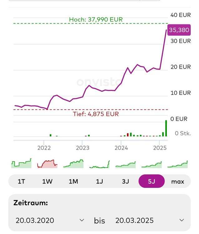 unb. benutzer März 20, 2025 vor 7 Stunden von GoldenesTheater: Die Folge von heute war aber das der Kurs um ca. 8% eingebrochen ist - warum ist mir nicht bekannt. Es wird nicht der kurzfristige Mega Renner wie andere, ich sehe eher langfristiges Potential. 8% nach der Rally und zwei Tage vor dem Hexensabbat bei den aktuellen Market Caps?? Langfristig bei Rüstung investieren??? Meiner Ansicht nach sollte man bei Einzelaktien schon aktiv beobachten, zu welchem Zeitpunkt der Gewinn noch realisiert werden kann. Die Produkte von SAAB sind gerade gefragt, ob das so bleibt ...der Erfolg basiert auf Unsicherheit und Konflikten. Eigtl. kein investment welches ich bis zur Rente halten wollen würde. Die Rally ist dafür gut... Diesen Beitrag teilen Link zum Beitrag