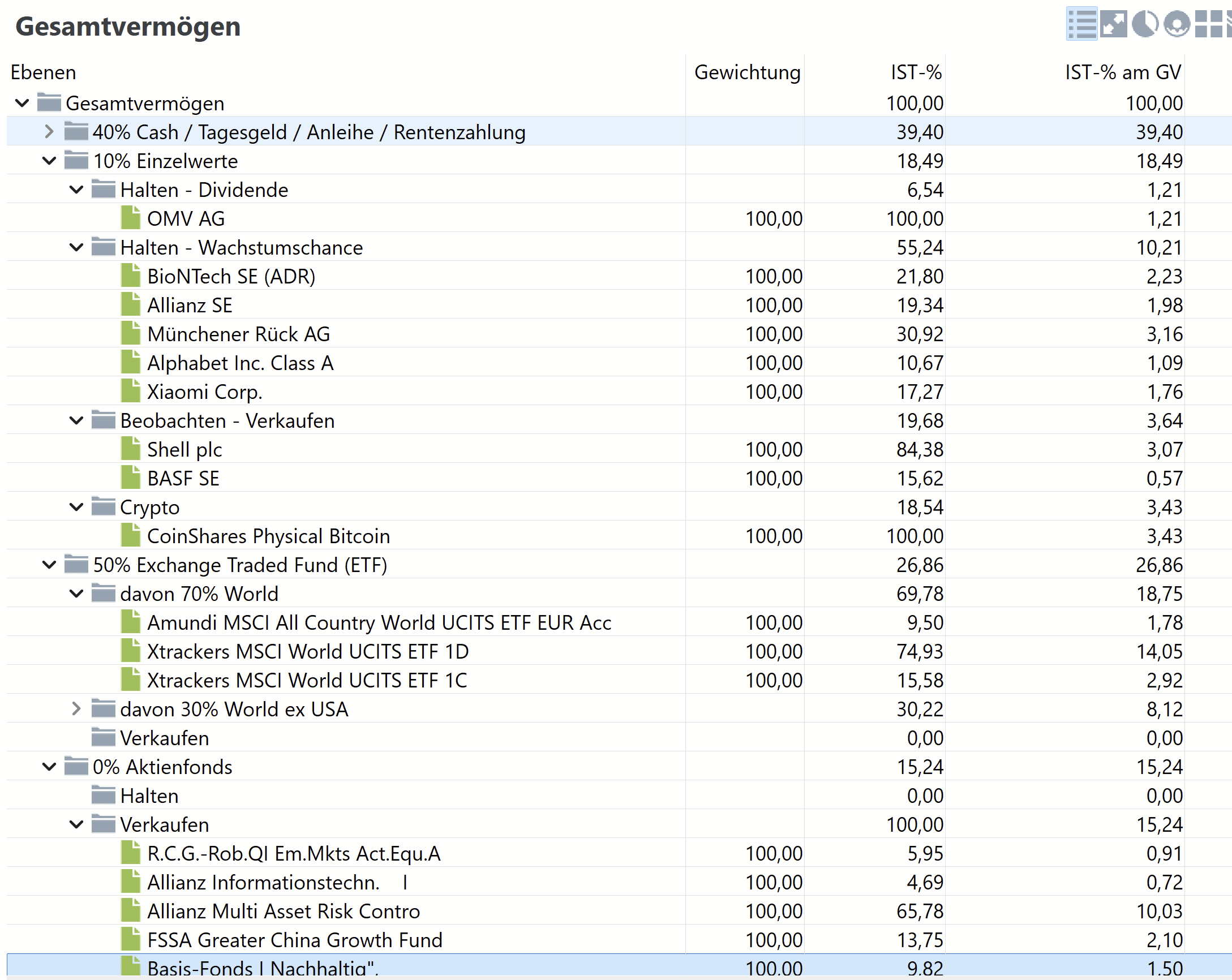 Im Laufe des Jahres wandern dann noch 24T€ ins Versorgungswerk und ein deutlich 5stelliger Betrag in Richting ETF. Somit sollte zum Jahresende die gewünschte Verteilung erreicht sein.