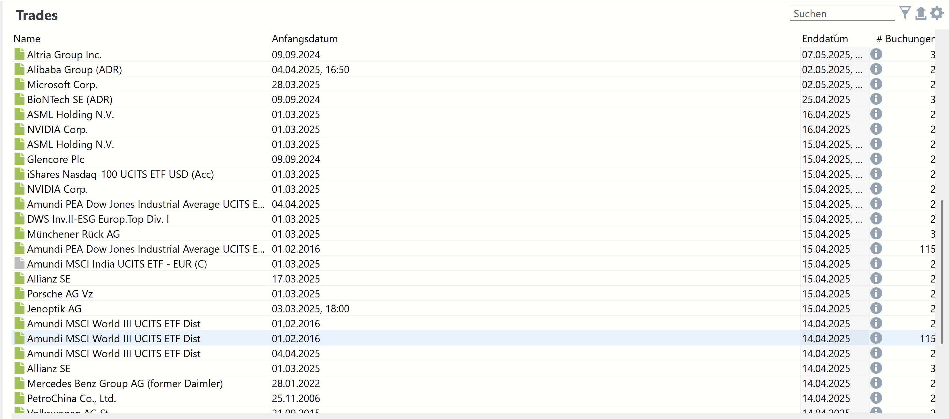 Die derzeitigen Verwerfungen haben mich relativ kalt gelassen, Portfolioperformance weist derzeit knapp 20T€ Verlust aus. Dieser ist in wirklichkeit nur ca. 15T€ (Buchverlust), da ich viele Altbestände per 01.03.2025 „eingeliefert“ hab, ohne den historischen Kurs.