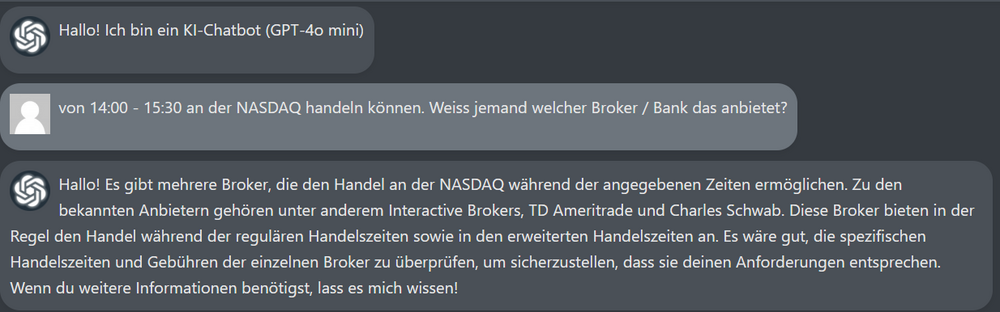 Rudi_40 April 17, 2025 · bearbeitet April 17, 2025 von Rudi_40 vor 21 Stunden von Ramstein: Es ist offenbar wirklich schwer zu verstehen (und Google-Nutzung ist auch nicht jedermans Sache): an der NASDAQ selbst findet Handel nur während der Öffnungszeiten statt. Es gibt aber Handelspartner, die vor- und nachbörslich Handel zu von ihnen festgesetzten Kursen anbieten. NASDAQ erfasst diese Kurse und zeigt sie an. Aussage dazu: https://www.investopedia.com/articles/investing/081814/nasdaq-premarket-what-you-need-know.asp#:~:text=During pre-market hours%2C brokerage,do so during standard hours. https://www.ig.com/en/trading-strategies/what-is-pre-market-trading-and-how-does-it-work--230620Heißt Heißt das nun, dass der Premarket an der NASDAQ nicht so funktioniert wie bei uns im außerbörslichen Handel? Ein Beispiel: Ich mache um 8 Uhr einen Trade über gettex. Der Trade wird dann sofort (vor Börsenbeginn um 9 Uhr) ausgeführt. Und beim Premarket an der NASDAQ verstehe ich das so, dass man im Premarket nur Limitorders aufgeben kann, die aber immer nur während der regulären Handelszeiten von 15:30-22:00 MEZ ausgeführt werden? Ist das richtig? Diesen Beitrag teilen Link zum Beitrag