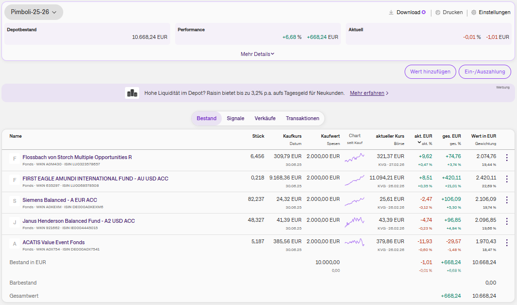 xaoz 2. März Hi, hab leider wieder 1-2 Wasserstandmeldungen verpasst, das fällt mir dann immer zu spät ein (ich bitte das zu entschuldigen). Stand Ende Februar +39,57 % 1. Ghost_69 +43,32% 2. xaoz +39,57% 2. Zonk4711 +30,22% 3. Schlumich +21,22% 3. finisher +18,13% 4. Pimboli +6,68% Diesen Beitrag teilen Link zum Beitrag