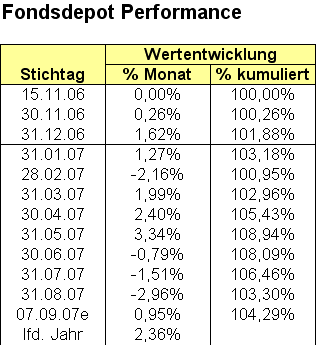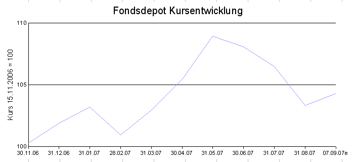 Laser12 September 9, 2007 So sehen die genauen Gesamtzahlen aus: Eine Monatsübersicht, die letzten 3 Monate gingen ca. 5 % verloren: Ein Kurschart des Fondsdepots: Diesen Beitrag teilen Link zum Beitrag