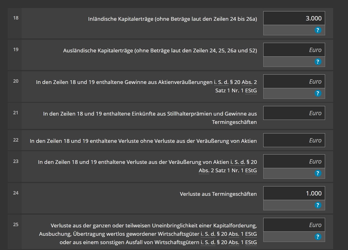 chirlu Dezember 17, 2025 vor 1 Stunde von reckoner: Strenggenommen darf man imho da wo Werbungskosten nicht extra abgefragt werden diese direkt abziehen. Werbungskosten bei Kapitalerträgen? Die gibt es doch nur in Form des Pauschbetrags. Diesen Beitrag teilen Link zum Beitrag