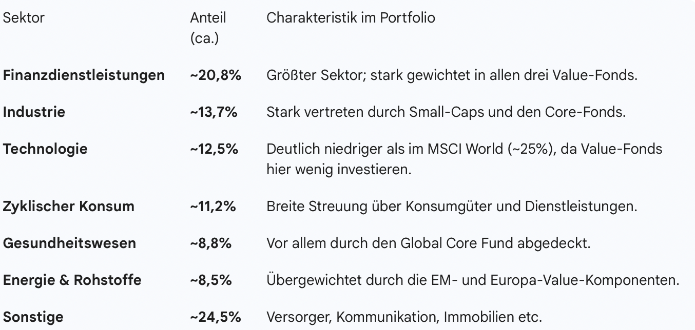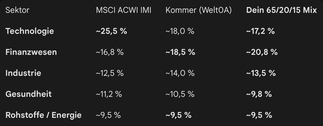Spezieller Dank geht an Gemini. Die Länderverteilung und Sektorenverteilung sieht jetzt so aus und kommt dem WELT01A schon recht nah. Ich freue mich auf Euer Feedback.
