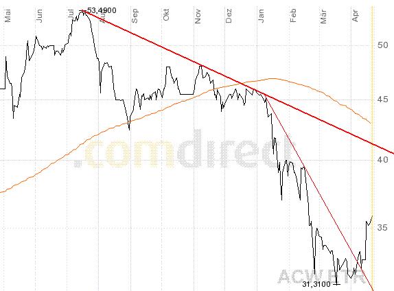 (rot) überwunden. Es wird spannend, denn die 200-Tage-Linie (orange) ist die
