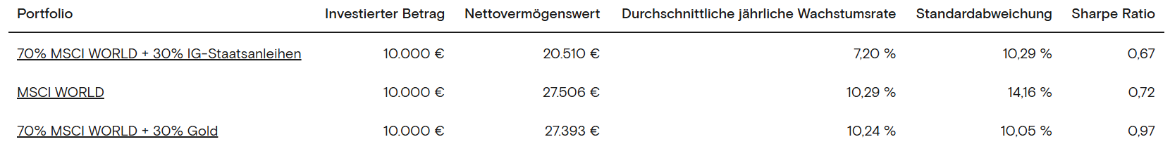 Puppi Samstag um 18:07 · bearbeitet Samstag um 18:56 von Puppi Am 24.3.2026 um 15:44 von GuyInborito: Dennoch würde mich interessieren, ob Langläufer als weiteres Asset angesehen werden können was den Rebalancing Effekt vlt nochmal verbessert und damit die gesamte Stabilität des Portfolios. Wie seht ihr das? Von 1985 bis 2015 (30 Jahre!) konnte man im Vergleich zu 100% Aktien mit einer Beimischung von z.B. 30% IG-Staatsanleihen mittlerer Laufzeit beeindruckende Ergebnisse erzielen. In diesem Zeitraum gab es mehr Rendite als mit 100% Aktien bei gleichzeitig deutlich weniger Volatilität/MaxDrawdown => KLICK Danach (also grob die letzten zehn Jahre) war es nicht mehr so und sogar die Sharpe Ratio von 100% Aktien war besser als die Mischung aus Anleihen und Aktien => KLICK In diesem Zeitraum wäre es besser gewesen, die 30% Staatsanleihen durch Gold zu ersetzen => KLICK ...bzw. die letzten 5-6 Jahre wären 30% Rohstoff-Futures eine gute Wahl gewesen => KLICK Man sieht also, dass es keine Garantie gibt, dass entsprechende Diversifikationseffekte durch Mischung von Assetklassen (=bessere Sharpe Ratio oder Dämpfen des MaxDD) im eigenen, individuellen, meist zeitlich begrenzten Anlagezeitraum wirken. Zu bedenken ist zudem, dass in der Praxis meist umso mehr laufende Kosteneffekte entstehen, je komplexer und umfangreicher das Multi-Asset-Depot samt manuellem Rebalancing ist (die Daten oben sind komplett ohne Kosten, die aber in der Praxis auf Produktebene samt Steuereffekten und Transaktionskosten bei uns eben anfallen). Diesen Beitrag teilen Link zum Beitrag