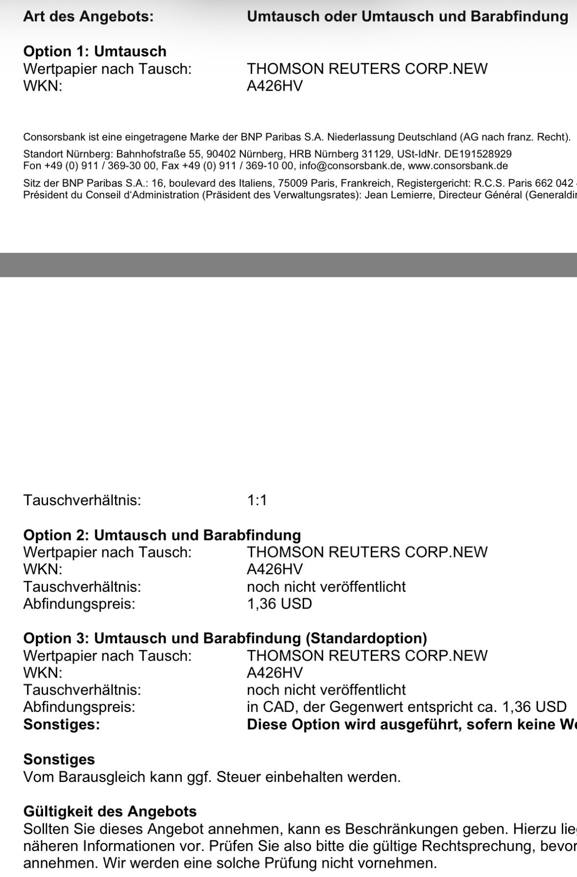 Frage zu Kapitalmaßnahme Thomson Reuters