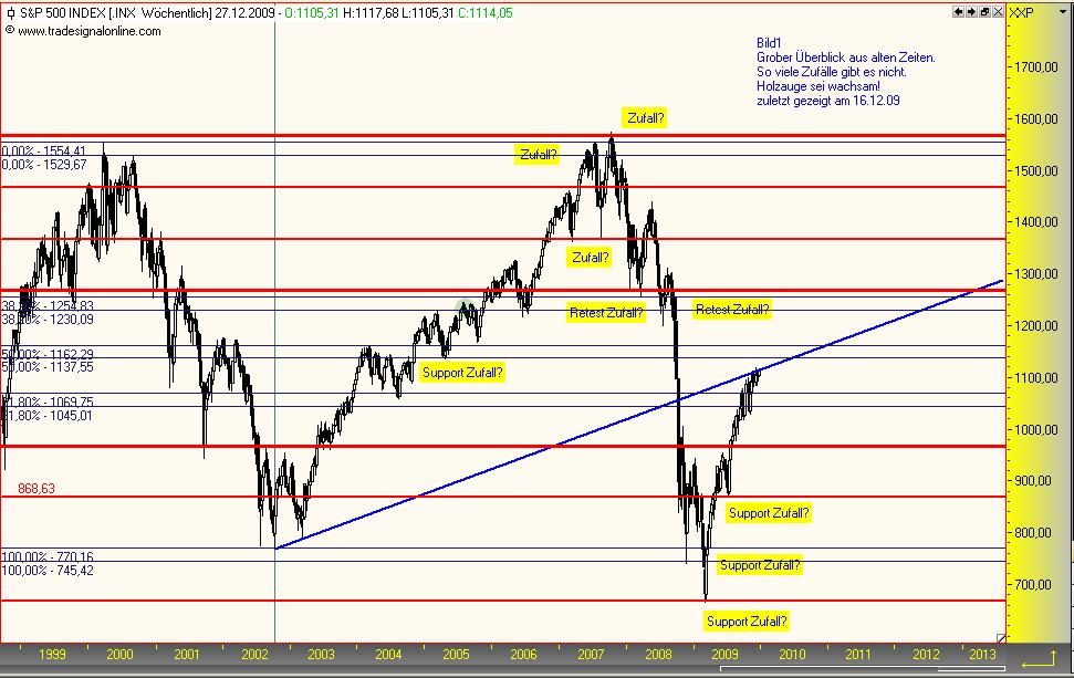 Denker Januar 20, 2010 Mein erstes Kursziel bei 6091 Punkte wurde um 3 Punkte verfehlt. Der erwartete Rücklauf an dem 1. Kursziel kam wie prognostiziert. Die Marke von 5844 möchte ich noch zusätzlich zum vorherigen Beitrag nennen. Hält diese Marke weiterhin, so könnte der Dax jetzt Richtung 6107-6162 laufen. Hierzu muss er allerdings erst mein erstes Kursziel knacken. Fällt der Dax unter die 5844, so sehe ich den Rücklauf bis ca. 5145. Hierzu ein neues Bild. Es zeigt in Rot den Footsie, in Gold den Dax, in Blau den DJI, in Grün ist es die NDXX und in Türkis den INX. Gestern wurde mit der weißen Candle der Rücklauf - Pullback - am 76,4% Retracement -Rot - Footsie - getestet. Nun dürfte das 50er Rt. der Nasdaq100 anstehen und anschließend das 76,4er Rt. des DJI. Diesen Beitrag teilen Link zum Beitrag