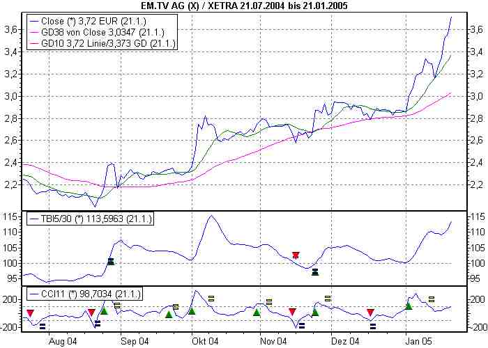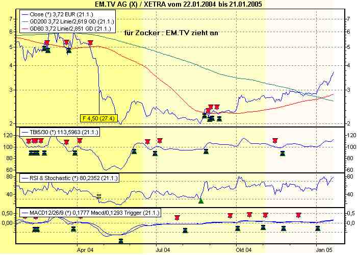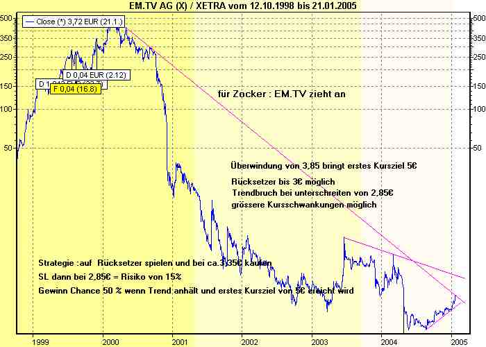 DAX43 Januar 23, 2005 7,80 wären auch immerhin über 100% Da EM.TV im Moment ziehmlich überkauft erscheint würde ich auf einen Rücksetzer spekulieren damit das Chance-Risiko Verhältniss besser wird . Diesen Beitrag teilen Link zum Beitrag