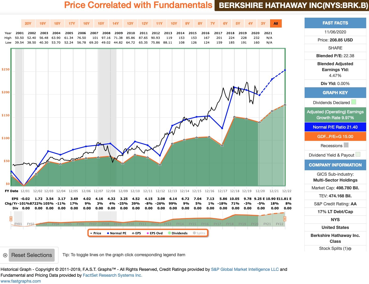 Laut FASTgraphs ist Berkshire fair bewertet: