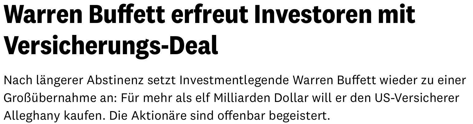 Toni April 2, 2022 · bearbeitet April 2, 2022 von Toni Und der gerade gemeldete neue Zukauf - Alleghany Corp. - ist trotz des Kursanstiegs seit der Meldung immer noch unterbewertet, zumindest laut FASTgraphs…Sauber, Warren! https://www.manager-magazin.de/unternehmen/berkshire-hathaway-will-versicherer-alleghany-kaufen-warren-buffett-startet-neuen-mega-deal-a-47026519-50cb-4119-a316-825ef315caf1 Diesen Beitrag teilen Link zum Beitrag