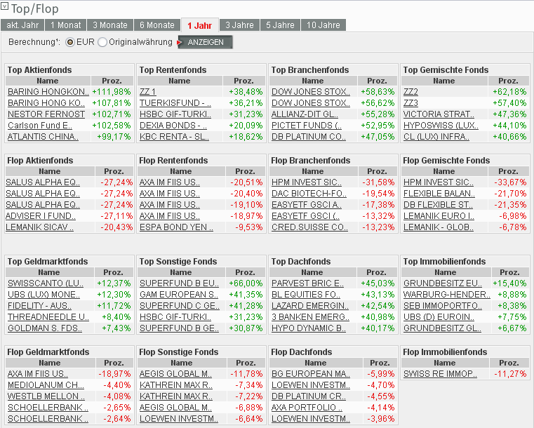 Aktiencrash Mai 15, 2004 · bearbeitet Dezember 10, 2014 von Schinzilord Edit: Anmerkung eingefügt Dieser Beitrag/Faden ist von 2007. Seither ist viel passiert. Dies sollte man beim Lesen berücksichtigen, insbesondere wenn es um konkrete Fonds geht. Die grundlegenden Gesichtspunkte sind weiterhin wertvoller Lesestoff. Zukünftig wird der Inhalt überarbeitet und angepasst Onvista Top/Flop Schnellübersicht Bei Onvista.de ist eine Top/Flop Schnellübersicht für alle Fonds zufinden ! Der Zeitraum läßt sich auf der Seite individuell einstellen. Performance 1 Jahr Diesen Beitrag teilen Link zum Beitrag