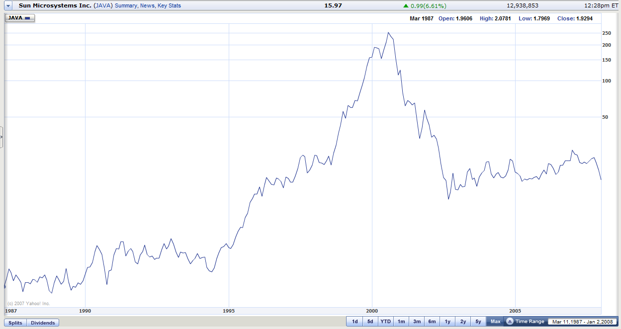 Thomas Belser Januar 16, 2008 Heute gab es ja hinsichtlich Sun Microsystems einiges zu vermelden. Zum einen wurden die vorläufigen Geschäftszahlen veröffentlicht und zum anderen kündigte Sun an, den schwedischen SQL-Datenbankspezialisten MySQL AB zu kaufen. Erst einmal zu den vorläufigen Geschäftszahlen: Für das zweite Quartal erwartet man Umsatzerlöse von circa 3,60 Milliarden Dollar. Das wäre im vergleich zum Vorjahr ein Plus von circa 1 Prozent. Dort lag der Umsatz bei 3,57 Milliarden Dollar. Im großen und ganzen kann man hier also nicht umbedingt von einer großen Umsatzsteigerung sprechen. Beim Nettogewinn erwartet man einen Wert zwischen 230 und 265 Millionen Dollar. Dies wäre ein Gewinn von 28 bis 23 Cents je Aktie. Im Vorjahreszeitraum betrug der Nettogewinn lediglich 133 Millionen Dollar, beziehungsweise 15 Cents je Aktie. Sollten sich die Zahlen im kommenden Quartalsbericht, welcher nächsten Donnerstag erscheint, bestätigen, dann halte ich dies schon einmal für einen relativ guten Anfang. Dafür, dass Sun Microsystems jahrelang erhebliche Verluste eingefahren hat und nun zum 5.ten Mal in Folge einen Gewinn bringt, finde ich die Zahlen einigermaßen ok. Um allerdings von einem wirklichen Turn-Around zu sprechen, muss sich allerdings auch noch einiges tun! Zum KGV: Mit Einbezug des letzten Quartals und dem minimalen erwarteten Gewinn von 28 Cent je Aktie komme ich bei dem aktuellen Kurs, welcher bei circa 16 Dollar liegt, auf ein KGV von circa 19. Bei dem Kursrückgang von rund 50% in den letzten Monaten ist der relativ niedrige KGV nicht weiter verwunderlich und die Aktie ist damit Zwar auch kein Schnäppchen zum Spot-Preis, meiner Meinung nach aber einigermaßen in Ordnung. Zum Kauf von MySQL AB: MySQL AB hatte es soweit ich weiß selber noch vor, in diesem Jahr an die Börse zu gehn. Das Unternehmen wäre für mich sicherlich ein Blick wert gewesen, da MySQL AB mit der gleichnamigen Datenbank den Datenbank-Markt zum großten Teil dominiert. Ich selber als Software-Entwickler kenne sogut wie keinen Kunden, bei dem nicht in irgendeiner Form der MySQL-Server zum Einsatz kommt. Mag sein, dass es einige für einen Gegensatz halten, dass es möglich sei, mit OpenSource-Geld zu verdienen, aber das ist oftmals auch eine Glaubensfrage, weshalb ich da jetzt auch nicht weiter drauf eingehe. Mit MySQL Enterprise bietet MySQL AB allerdings auch kostenpflichtige Lösungen an. Für die Übernahme zahlte Sun Microsystems rund eine Milliarde Dollar. Den Preis halte ich auf Grund des hohen Bekanntheitsgrades und der Verbreitung auch recht angemessen. Die Übernahme soll zwar zwischen März und April abgeschlossen sein, allerdings wird sie nach Schätzungen erst im Fiskaljahr 2010 größere Auswirkungen haben. Wie schon erwähnt deute ich die Übernahme relativ positiv, was vor allem an der hohen Bekanntheit und Verbreitung liegt. Wachstum ist meiner Meinung nach im Datenbank-Markt, welcher auf 15 Milliarden Dollar geschätzt wird, durchaus vorhanden, vor allem wenn man überlegt, dass Anbieter wie Google, Facebook und viele weitere auf diese Technik setzen. Chart: Hier noch ein langfristiger Chart. Viel zu sagen braucht man dazu nicht - die DotCom-Blase hat ihre Spur auf jeden Fall deutlich hinterlassen, und wer sich irgendwo den 5-Jahres-Verlauf anschaut wird einen äußerst volatilen Chart zu sehen bekommen, was bei der Unsicherheit auch wirklich nicht verwunderlich ist. Fazit: Langfristig traue ich Sun Microsystems einiges zu, auch wenn viele Anleger ihr Vertrauen nach dem Platzen der DotCom-Blase in dieses Unternehmen verloren haben - was bei dem Zusammenbruch des Kurses mit den dadurch verbundenen Verlusten auch nicht weiter verwunderlich ist. Allerdings sollte man sich, um wirklich sicher zu gehen und um die eigenen Nerven zu schonen, noch gedulden, ein paar Quartalsberichte übers Land ziehen lassen und beobachten, ob man es wirklich schafft, ein dauerhaftes Wachstum mit hoffentlich noch weitaus besseren Zahlen zu realisieren. Hier noch die offiziellen Veröffentlichungen aus dem Investor Relations-Bereich der Sun Microsystems-Website: http://www.sun.com/aboutsun/pr/2008-01/sun....20080116.1.xml http://www.sun.com/aboutsun/pr/2008-01/sun....20080116.2.xml Ich habe probiert, relativ konstruktiv an die Sache ranzugehen. Kritik und Verbesserungsvorschläge nehme ich natürlich gerne entgegen. Diesen Beitrag teilen Link zum Beitrag