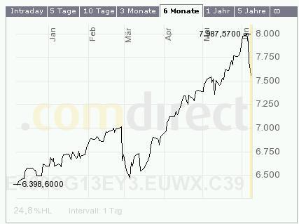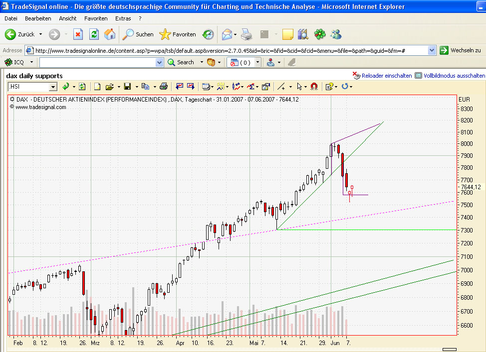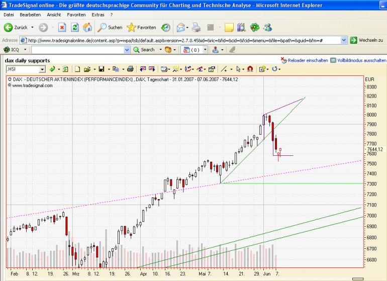 parti Juni 8, 2007 jetzt sind wir im kritischen bereich. wie ich geschrieben hatte wäre ich bei ca 7800 short gegangen. erstes kurziel lag für mich bei 7531 Punkten. Sollte die Marke nicht halten gehts weiter runter. Momentan hält sie. Mal schauen was passiert Diesen Beitrag teilen Link zum Beitrag