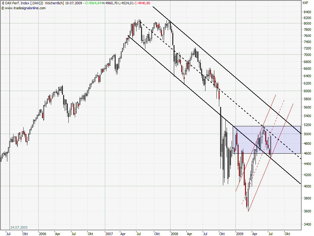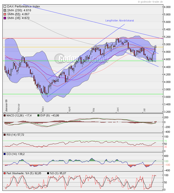Die Optimistischste Variante wäre natürlich das die Börse an ein Ende der Krise glaubt und wir nun die Vorsetzung der Rally sehen mit Kursen jenseits der 5200.