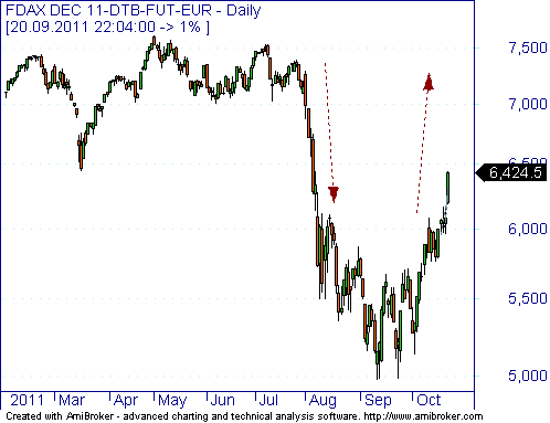 Damit besteht die Chance, dass der Abwärtstrendbereich aus dem August (der vemutlich eh dem Fehlverhalten der UBS-Delta-1-Crew zuzuschreiben ist) wieder genauso schnell durchmessen wird und wir noch im November das Jahreshoch sehen.
