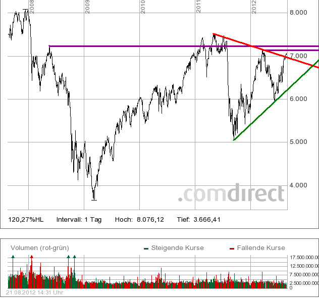b.p. September 6, 2012 · bearbeitet September 6, 2012 von b.p. Durchbruch nach oben im 5J Chart? auf zu 7500 ? Diesen Beitrag teilen Link zum Beitrag