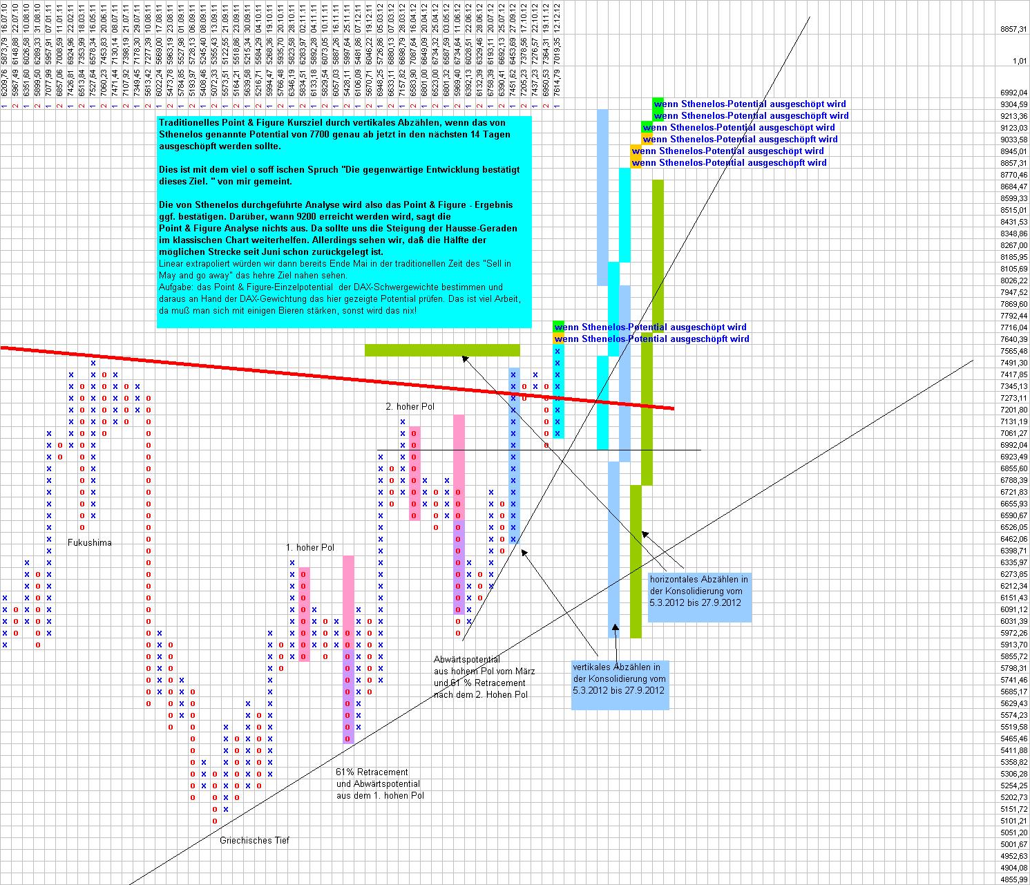 diagenes Dezember 15, 2012 · bearbeitet Dezember 15, 2012 von diagenes In der Tat ist es auch meines Erachtens wahrhaft vorzüglich und heilsam, gebührend und recht, nach Jahrhunderte alter Tradition und echtem Reinheitsgebot gebrautes Pils aus deutschen Landen zu verinnerlichen. Der Genuss des köstlichen Gerstensaftes inspiriert uns, die Automatismen seelenloser Rechenmaschinen, den faultierhaften Defätismus chartfeindlicher Ignoranten und die vom Nachrichtenpicken besoffenen Börsenvögel so auszutricksen, daß wir im erratischen Wellensalat der Börse oben bleiben. Mein Kursziel für den DAX lautet: 9200. Die gegenwärtige Entwicklung bestätigt dieses Ziel. Sternschnuppen verglühen, der Adler aber schwebt zeitlos in heiligen Höhen. Kommentar vom 2012-12-15: dies ist keine philosophische, sondern eine viel o soff isch e Analyse mit durchaus akzeptablem Wahrheitsgehalt gemäß dem Motto "in vino veritas". In nüchternem Zustand sei daher an Hand eines Charts illustriert, was der Viel o Soff mit "Die gegenwärtige Entwicklung bestätigt dieses Ziel" gemeint hat: Diesen Beitrag teilen Link zum Beitrag