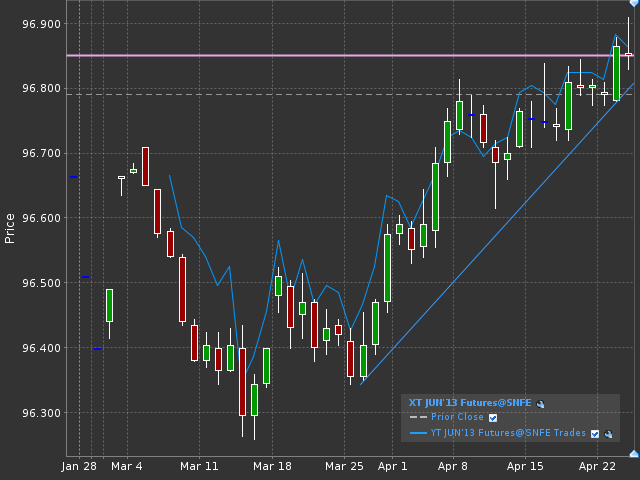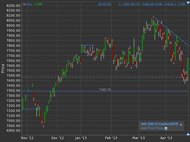 H.B. April 23, 2013 Moment. Der Abwärtstrend ist vollkommen intakt. Das ist (bisher) nichts weiter als ein technischer Pull-Back. Gerade die Intensität der Kerze spricht für Shorteindeckungen und eine Bearmarket-Rallye. Der Rentenmarkt ist weiterhin das Ziel der Überschußliquidität, insbesondere der australische: (korresponiderender Future zum dt. Bund-Future) Diesen Beitrag teilen Link zum Beitrag