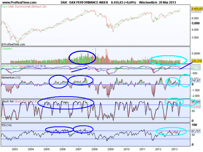 Sthenelos Mai 20, 2013 Weitere Indikatorenvergleiche zur Vergangenheit, monthly in ca. Dax Jahr 2000 MACD 780 Dax Jahr 2000 Momentum 2750 Dax Jahr 2000 RSI 75 (Jahr 1997 - 92) Dax Jahr 2007 MACD 770 Dax Jahr 2007 Momentum 2300 Dax Jahr 2007 RSI 86 Dax Jahr 2013 MACD 437 Dax Jahr 2013 Momentum 2200 Dax Jahr 2013 RSI 71 Diesen Beitrag teilen Link zum Beitrag
