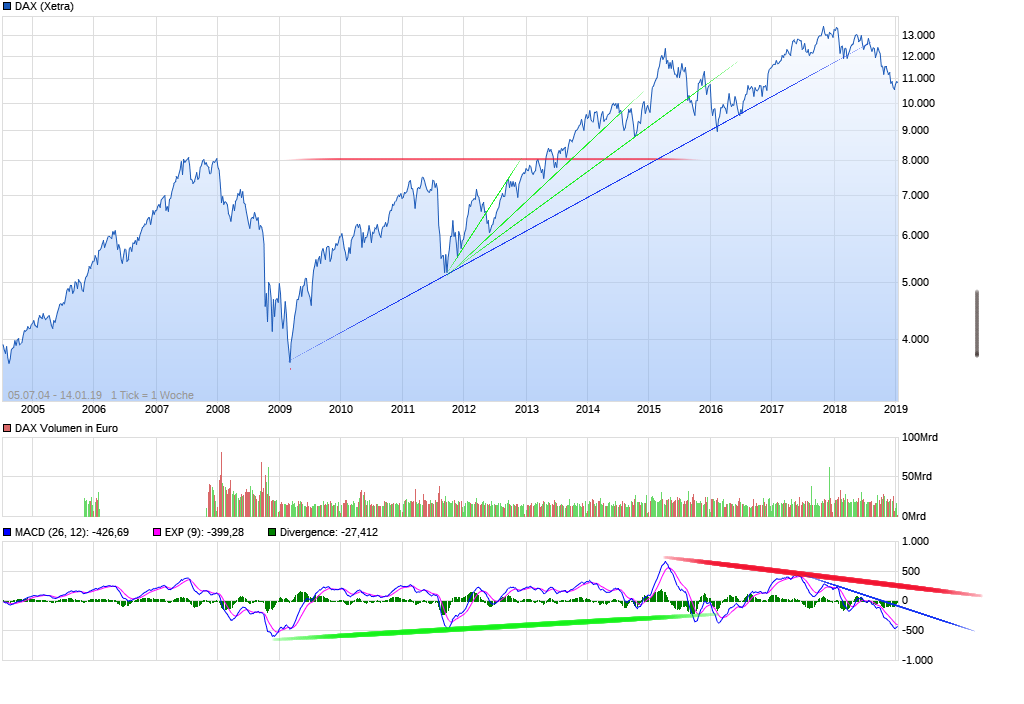 SPIC06 März 21, 2020 Hallo Aktiencrash, vielen Dank für deine ausführliche Darstellung, welche ich sehr interessant finde. Der DAX ist in der letzten Woche mehrmals unter die 8300er Marke. Wäre somit nicht der neu ausgebildete Aufwärtstrend (grün) durchbrochen? Oder anders gefragt, wann wäre der Aufwärtstrend gebrochen und ein signifikanter Abwärtstrend eingeleitet? Vielen Dank für deine Antwort im Voraus. Diesen Beitrag teilen Link zum Beitrag