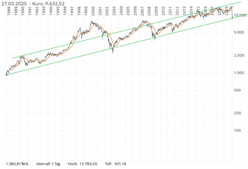 Toni März 29, 2020 · bearbeitet März 29, 2020 von Toni Vielen Dank an @Aktiencrashfür die Chartanalyse. Meine sieht ähnlich aus. IMO hat der DAX die Tiefstkurse bereits gesehen, der Ultralangfristchart mit Aufwärtstrendkanal sieht bei mir so aus: Diesen Beitrag teilen Link zum Beitrag