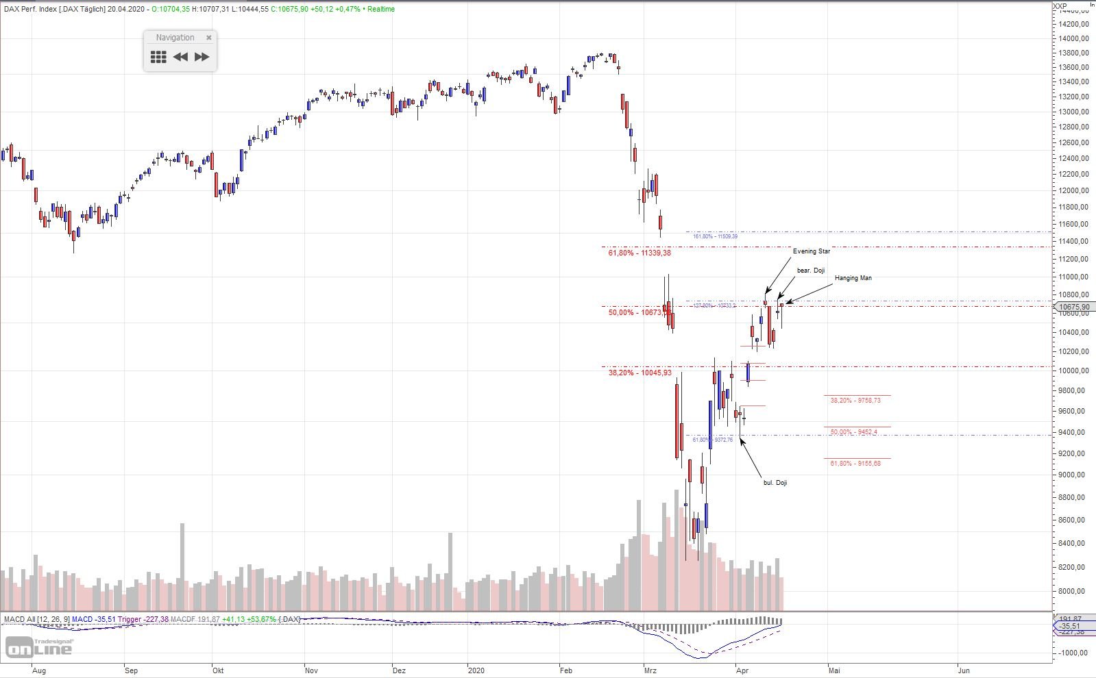 Penta Plexity April 20, 2020 Hallo Tradergemeinde, DAX selber macht lauter bearische Kerzen, letzte Woche und heute wieder. Anbei 4 Std. + Tageschartchart mit DAX und XDAX. Die Frage ist, wann bricht die Trendlinie? Oder wird die garnicht brechen? Diesen Beitrag teilen Link zum Beitrag