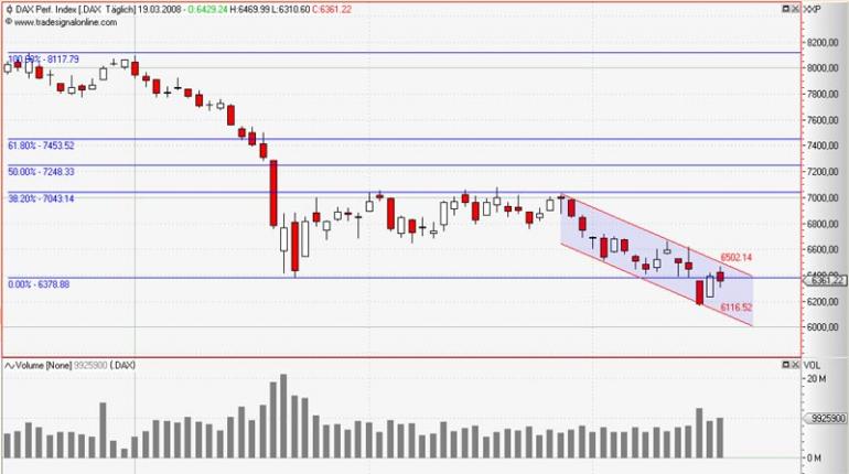 steff123 März 24, 2008 · bearbeitet März 24, 2008 von steff123 Also DB-Indikation für morgen ist 6504. Bis 6550 ist der seit Jahresbeginn bestehende Abwärtstrend weiter intakt. Bin gespannt, wie wir morgen eröffnen. Wahrscheinlich bekommen wir ein riesengroßes Gap. Dann ist die Chance sehr groß, dass wir nochmals die 6300 sehen. Diesen Beitrag teilen Link zum Beitrag