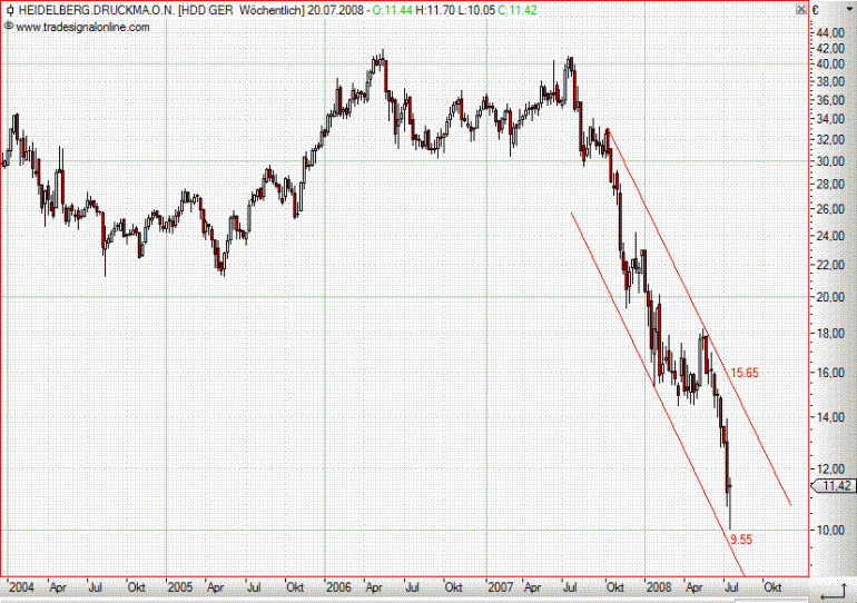 pitcare34 Juli 21, 2008 Printausgabe vom 19.07.2008NACHRICHTEN Heidelberger Druck fürchtet Übernahme Mannheim. Der weltgrößte Druckmaschinen-Hersteller Heidelberger Druck sieht sich wegen seines eingebrochenen Aktienkurses selbst als Übernahmeziel. «Es gucken viele drauf, jeder weiß, welches Substanz dieses Unternehmen hat», sagte Konzernchef Bernhard Schreier auf der Hauptversammlung. Er schloss allerdings aus, dass ein direkter Konkurrent zuschlägt: «Kein Wettbewerber kann uns als Marktführer übernehmen. Das ist kartellrechtlich unmöglich.» Binnen zwölf Monaten ist der Kurs von gut 40 Euro auf aktuell 11,28 Euro eingebrochen. Also unrecht hab ich wohl mit meiner Einschätzung nicht unbedingt gehabt, mal sehen wann es richtig ernst wird! Diesen Beitrag teilen Link zum Beitrag
