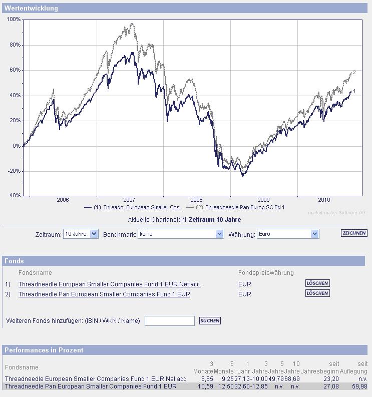 Laser12 Januar 16, 2013 Moin, zum Vergleich mit dem THREADNEEDLE PAN EUROPEAN SM COMP RET EUR ACC A0HMGB GB00B0PHJS66 hier mal eine kleine Übersicht von Europafonds aus meinem Musterdepotthread: Diesen Beitrag teilen Link zum Beitrag