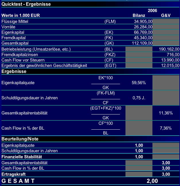 quicktest auf basis der zahlen von 2006:
