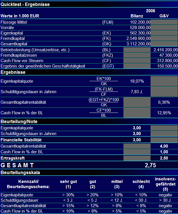 Toni März 21, 2007 So, hier nun der Quicktest mit den Daten von 2006: Da hat sich scheinbar nicht viel geändert. Allerdings sind die Rentabilitätskennzahlen etwas besser geworden, gerade die überaus wichtige Eigenkapitalrendite ist jetzt überdurch- schnittlich hoch (Ausschnitt aus dem Geschäftsbericht 2006): Aber die Umsatzrendite ist immer noch gering. Fazit: Für mich ist die Aktie nicht gerade viel interessanter geworden... Diesen Beitrag teilen Link zum Beitrag