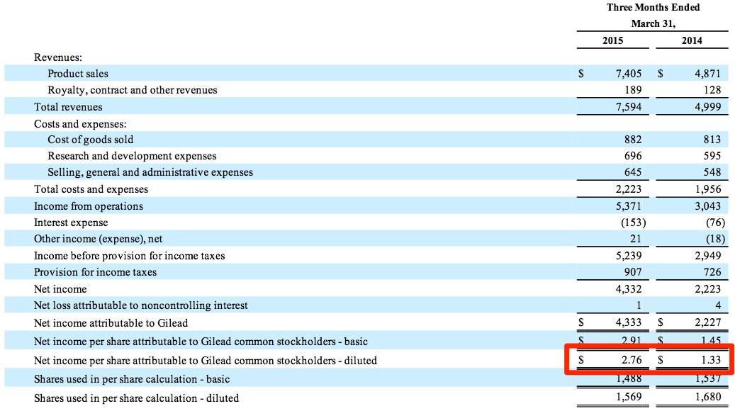 Toni Mai 1, 2015 · bearbeitet Mai 1, 2015 von Toni Q1-Zahlen Die dringend erwarteten Q1-Zahlen sind da. Gilead-Investoren sind deswegen so neugierig darauf, weil die Diskussionen über die Preissenkungen des wichtigsten Gilead-Medikaments Harvoni in den letzten Wochen für Unsicherheit gesorgt haben (IMO unbegründet). Nun zu den Zahlen: Der Umsatz konnte um ca. 51% ggü. Vorjahr gesteigert werden, das macht dann beim Gewinn-pro-Aktie eine sagenhafte Steigerung von über 100%, bedingt durch Aktienrückkäufe etc. Fazit: Diese Unternehmen ist eines meiner besten Investments ever, ein sehr langfristiges noch dazu. Ich bin und bleibe investiert. Die 8-monatige Konsolidierungsphase der Aktie dürfte damit beendet sein (Short Squeeze erwartet ;-) Diesen Beitrag teilen Link zum Beitrag