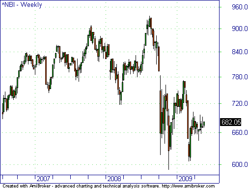 Wobei die Biotechs zur Zeit generell die Marktperformance nicht mit machen, wie der Blick auf den Nasdaq-Biotech-Sektor zeigt: