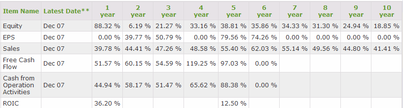 Sieht man sich die Entwicklung des EPS an, erkennt man einen kleinen Einbruch im Jahr 2003 und einen extremen im Jahr 2006 (der Jahresbericht 2006 wurde am 10. April 2007 veröffentlicht, sodass auf dem Chart der Einbruch wahrscheinlich deswegen erst später ausgewiesen wird; in der Bilanz erschienen die Einbrüche 03 und 06).