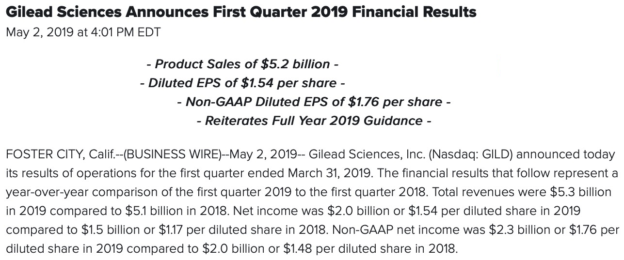 Toni Juli 30, 2019 · bearbeitet Juli 30, 2019 von Toni Die Quartalszahlen (Q2) sind veröffentlicht: >> “We saw strong revenue growth quarter-over-quarter, primarily driven by our HIV medicines and the rapid adoption of Biktarvy. Based on this momentum and our confidence in the outlook for the coming months, we are raising our full-year product sales guidance for 2019.” << Investor Relations Diesen Beitrag teilen Link zum Beitrag