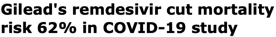 Toni Juli 10, 2020 · bearbeitet Juli 10, 2020 von Toni https://seekingalpha.com/news/3590202-gileads-remdesivir-cut-mortality-risk-62-in-covidminus-19-study Diesen Beitrag teilen Link zum Beitrag