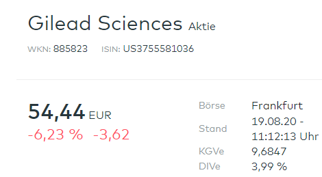 howhardgerrard87 Oktober 16, 2020 Ich hatte schon April/Mai hier berichtet über die schwache Pre-Study und dessen Statistik Auswertung, wurde ordentlich getrickst damit Aktie hochfahren konnte ^^ Bei GILD ist der Zug sowieso schon abgefahren, der kurs der letzten Jahre zeigt es. Ich hätte es denen als letztes zugetraut. Deren Pipeline sieht auch schwach aus. @Toni Noch investiert? Ist denke ich eine deiner Sorgenkinder? Diesen Beitrag teilen Link zum Beitrag