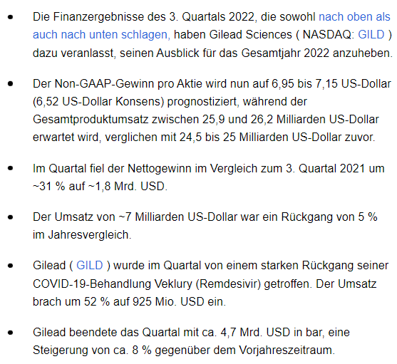 Während die Nicht-Veklury-Umsätze solide waren, besteht das Problem darin, dass der bereinigte Gewinn pro Aktie nur 1,37 US-Dollar pro Aktie betrug, was einem Rückgang von 35 % gegenüber dem Vorjahr entspricht, hauptsächlich aufgrund höherer F&E-Ausgaben und allgemeiner und Verwaltungskosten. Das war der Mangel im Bericht, wenn Sie mich fragen.