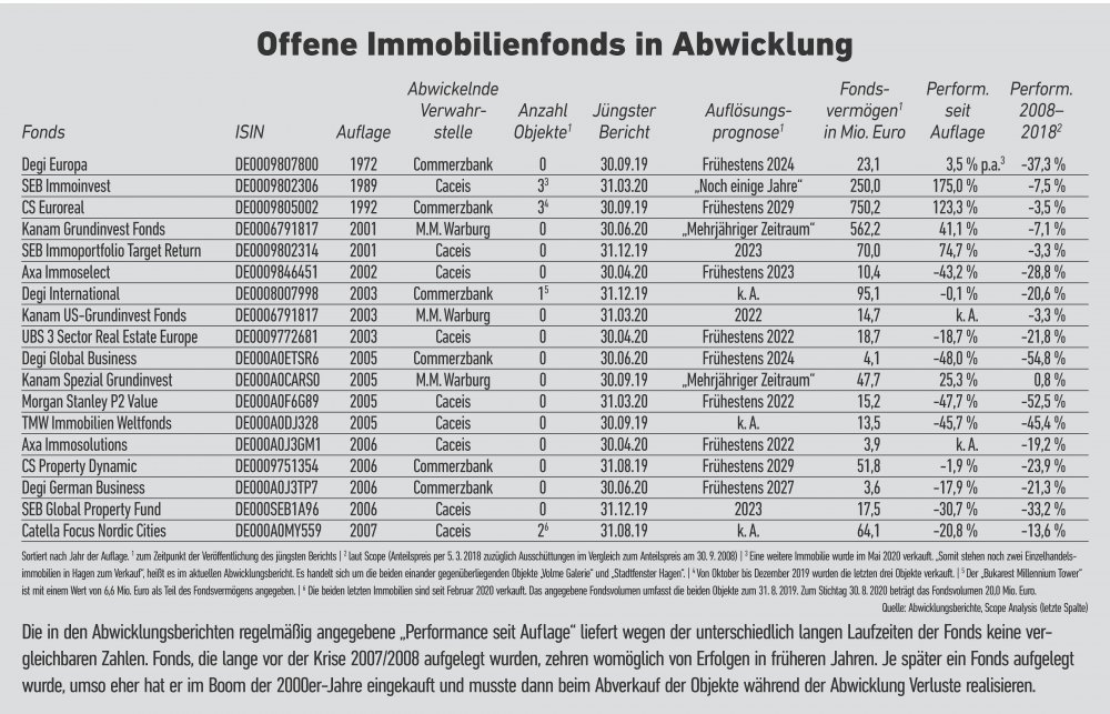 Geldhaber Februar 22, 2021 Artikel Wie lange offene Immobilienfonds noch in Abwicklung sind [FONDS professionell] v. 16.12.20 Übersicht der in Abwicklung befindlichen Immofonds mit Prognosen zum Auslösungszeitpunkt Zitat Zehn Jahre nach dem Start der ersten Abwicklung eines offenen Immobilienfonds ist noch kein einziger endgültig aufgelöst. Dabei haben alle bis auf zwei ihre Immobilien inzwischen verkauft. FONDS professionell hat die Auflösungsprognosen der Fonds zusammengestellt. Zitat Dass sich die endgültige Abwicklung der Fonds so lange hinzieht, hat eine Reihe von Gründen. In erster Linie sind es mögliche Steuernachzahlungen, die die Fonds zwingen, noch einige Jahre Liquidität vorzuhalten. Diesen Beitrag teilen Link zum Beitrag