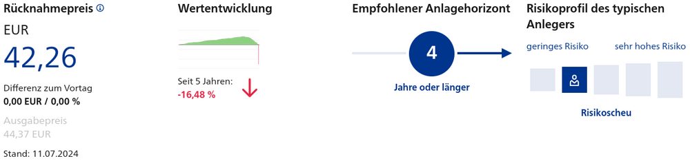 Hier ist die Fondsgesellschaft in der Risikobewertung zwar eine Stufe hochgegangen... Aber auch diese Bewertung ist viel zu gut. Die Investoren mussten gerade einen Wertverlust von über 20% hinnehmen.