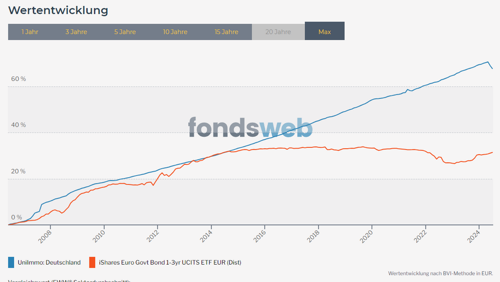(Edit: letzten Chart ignorieren, zumindest nach KGV Preisen stimmt der UniImmo knick nicht, keine Ahnung was da bei fondsweb falsch lief.)