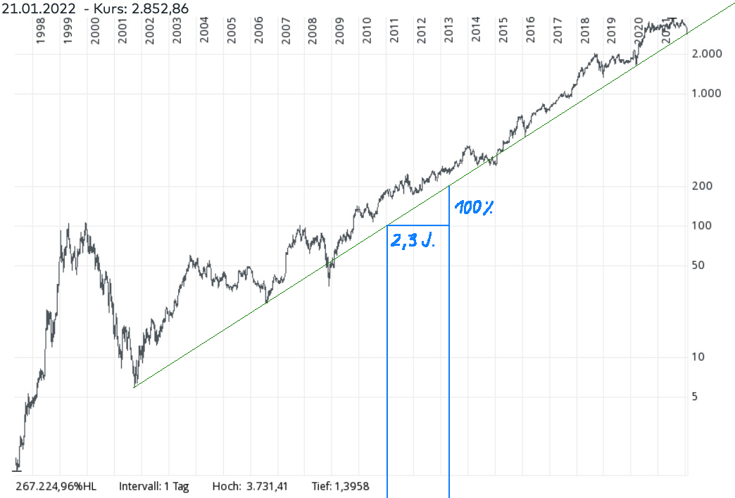 Demnach könnte die Aktie in 2 Jahren bei 5500 USD stehen, was fast einer Verdopplung des Aktienkurses gleich kommen würde....