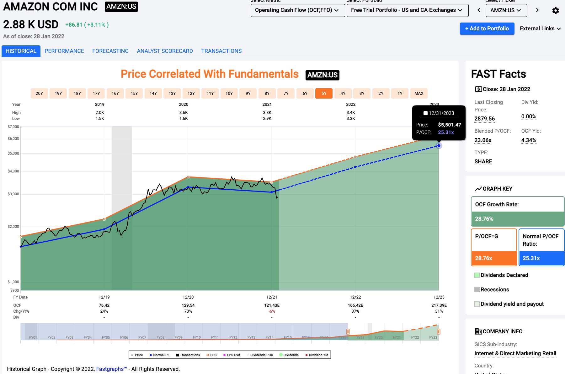 Hier die 5-Jahressicht, da die Einstellung eines grösseren Zeitraumes an der Normal P/OCF Ratio kaum etwas ändert.
