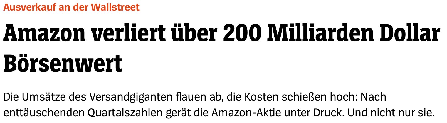 herbert_21 April 30, 2022 Amazon hat jetzt das dritte Mal in Folge die Quartalszahlen verfehlt, und ich vermisse in der Diskussion das sich verlangsamende Umsatzwachstum. Ein 40er P/E ist bei steigenden Wachstum überhaupt kein Problem, aber wenn das Wachstum deutlich unter den Erwartungen liegt, dann lastet natürlich nicht nur kurzfristig auf dem Kurs. Damit dieser steigt, muss das Management erst mal zeigen, wo die Gewinne herkommen, und eigentlich ist bei der Marktstellung Amazons die Querfinanzierung des unprofitablen Zustellungsgeschäfts per se ein Fall für die Wettbewerbsbehörde. Die Aktie ist kein Kauf und buy the dip ist bei solchen Werten keine Strategie. Einzig eine bewusste Spekulation auf ein freiwilliges oder erzwungenes Abspalten von AWS könnte sich aus Anlegersicht lohnen. Selbst dann aber stelle ich die Frage, woher die Gewinne des Rest-Amazons kommen sollen. Die Opportunitätskosten fürs jahrelange Warten darauf, dass die Spekulation aufgeht, könnten hoch sein und die Rendite negativ. Diesen Beitrag teilen Link zum Beitrag
