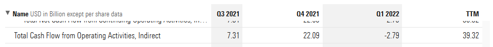 german skeptic Juli 9, 2022 Am 7.7.2022 um 06:42 von Toni: ... Die Aktie wurde ja schon immer nach ihrem Price-to-Operating-Cashflow-Verhältnis (P/OCF) bewertet und nicht nach KGV. Wenn sie sich weiterhin daran hält, kann sie sich locker verdreifachen in den kommenden 3 Jahren.... ... Dazu gehört auch die Frage, wie sich der OCF bei AMZN in den nächsten Qs entwickeln wird. Das sah zuletzt nicht mehr eindeutig nach unbegrenztem Wachstum aus: Diesen Beitrag teilen Link zum Beitrag